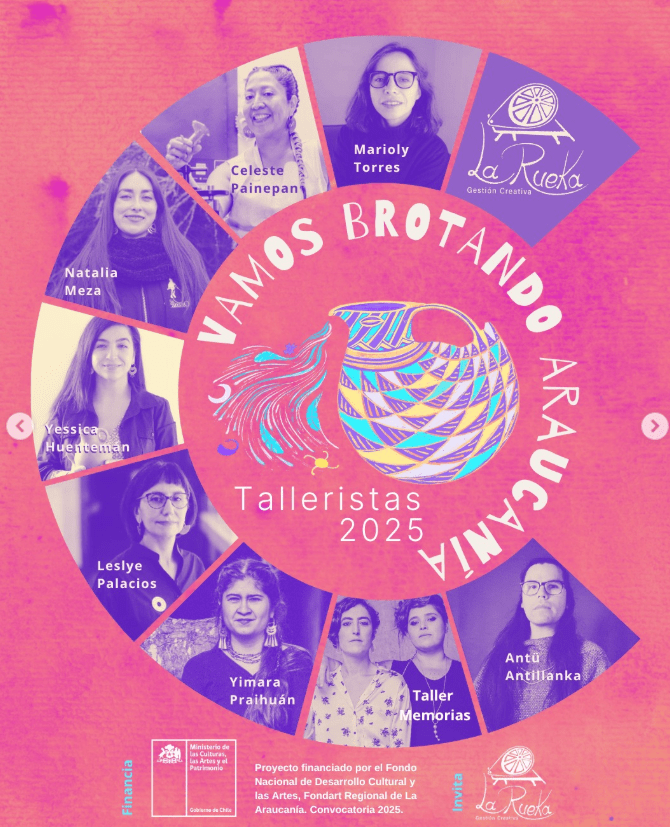 Vamos Brotando Araucanía 2025 es una apuesta por fortalecer el trabajo de las mujeres artesanas del sur de Chile, entregando herramientas de autogestión, visibilización y creación colaborativa. El proyecto es posible gracias al financiamiento del Fondo Nacional de Desarrollo Cultural y las Artes, Fondart Regional de La Araucanía, convocatoria 2025.