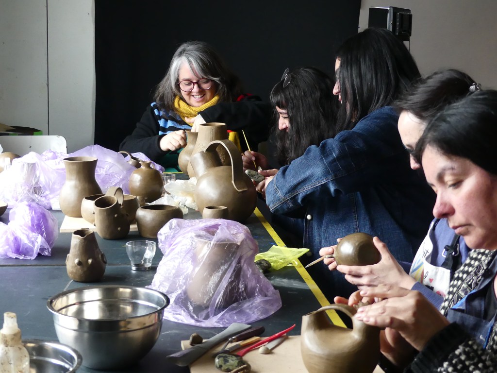 El taller abordó contenidos fundamentales sobre los procesos geológicos que permiten la formación de la greda, sus características físico-químicas y su vínculo con la cosmovisión mapuche. Asimismo, se profundizó en técnicas históricas del wizün, estilos estéticos de la alfarería mapuche —desde el periodo temprano hasta el republicano— y prácticas como modelado por pellizco y lulo, bruñido, pulido, decoración simbólica y uso de herramientas básicas. Todo el proceso se trabajó desde un enfoque participativo y horizontal, reconociendo el dinamismo cultural de la alfarería mapuche y su transmisión intergeneracional.